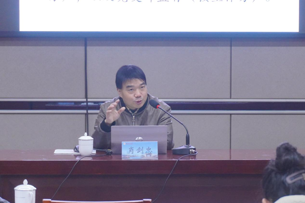 11月26日下午,學校第二期“明達先鋒”黨建論壇暨“紅蘊人文”組織員工作室第二期“紅蘊課堂”活動在明達樓230會議室舉辦。活動特邀浙江工業(yè)大學馬克思主義學院教授、中共浙江省委黨校全面從嚴治黨研究中心研究員肖劍忠作題為“如何高質量開展黨建研究工作”的專題講座。校黨委組織部副部長郭勝,“四強”組織員培養(yǎng)對象、在湖高校骨干組織員培養(yǎng)對象等30余人參加活動。活動由人文學院黨委書記程龍主持。