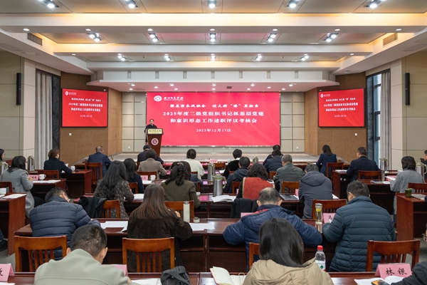 12月17日下午,學校召開2025年度二級黨組織書記抓基層黨建和意識形態工作述職評議考核會。校黨委書記許慧霞主持會議并講話,黨委副書記陳永華、丁敢真出席會議,黨務部門負責人,各二級黨組織書記,校第四次黨代會代表、黨支部書記代表、黨員代表等參加會議。